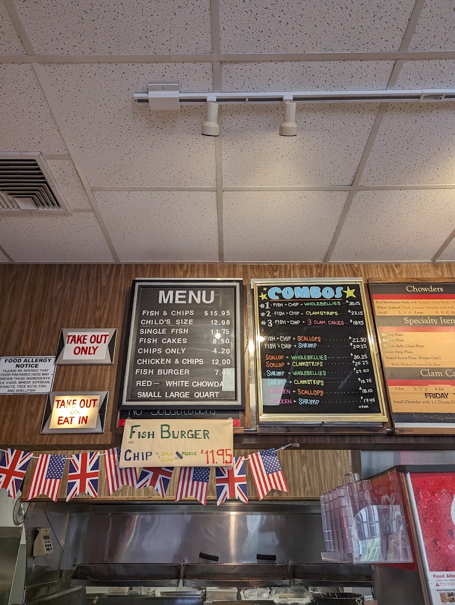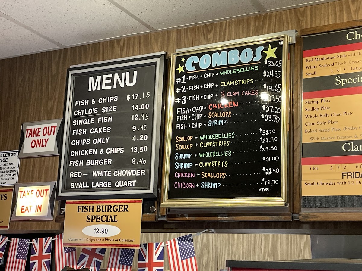 Located in Woonsocket, RI, Ye Olde English Fish & Chips serves up a delectable menu celebrating classic New England seafood. Their signature dish, Fish and Chips, pairs perfectly with choices like Wholebelly Clams, Clam Strips, or Clamcakes. On Fridays after 3 PM, you'll want to arrive early to satisfy your craving before the combo plates disappear.
